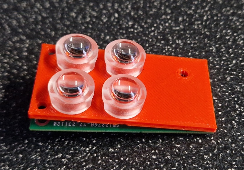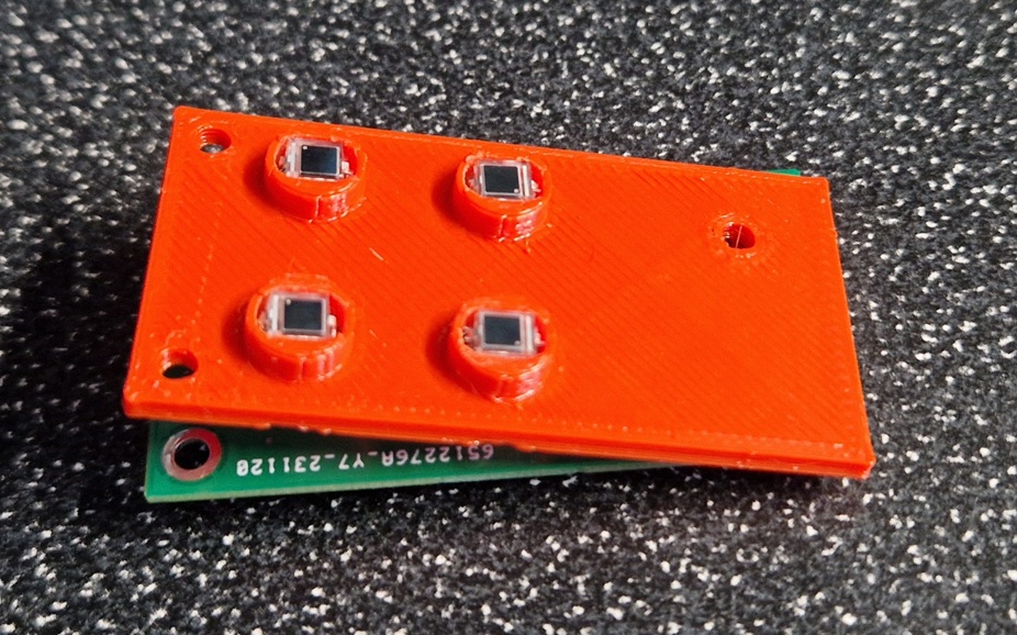 I didn’t have a full diecast enclosure so I made a 3d printed cover and supporting structure to hold the lenses and photodiodes off the board, the spacing is wider than the original design so I had to have lots of floating wires behind the diodes.