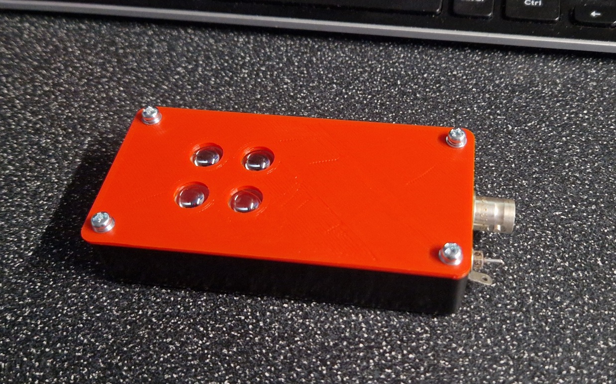 Last year I made a pcb up which allows 4x photodiodes to work in parallel giving a greater beamwidth behind a Fresnel lens, now I’ve finally put this in an enclosure with 4x separate lenses, one on each photodiode. This is in the hope that it will survive sunlight!